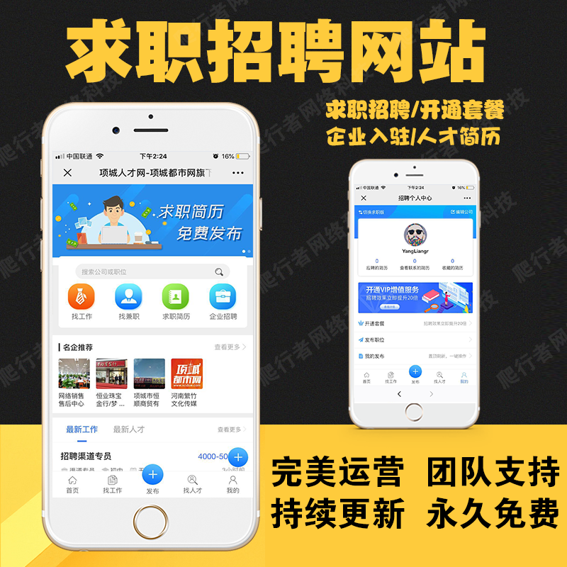 求职招聘网站源码 微人才微招聘小程序劳务 招人才找工作公众号热门设计联盟服务商
