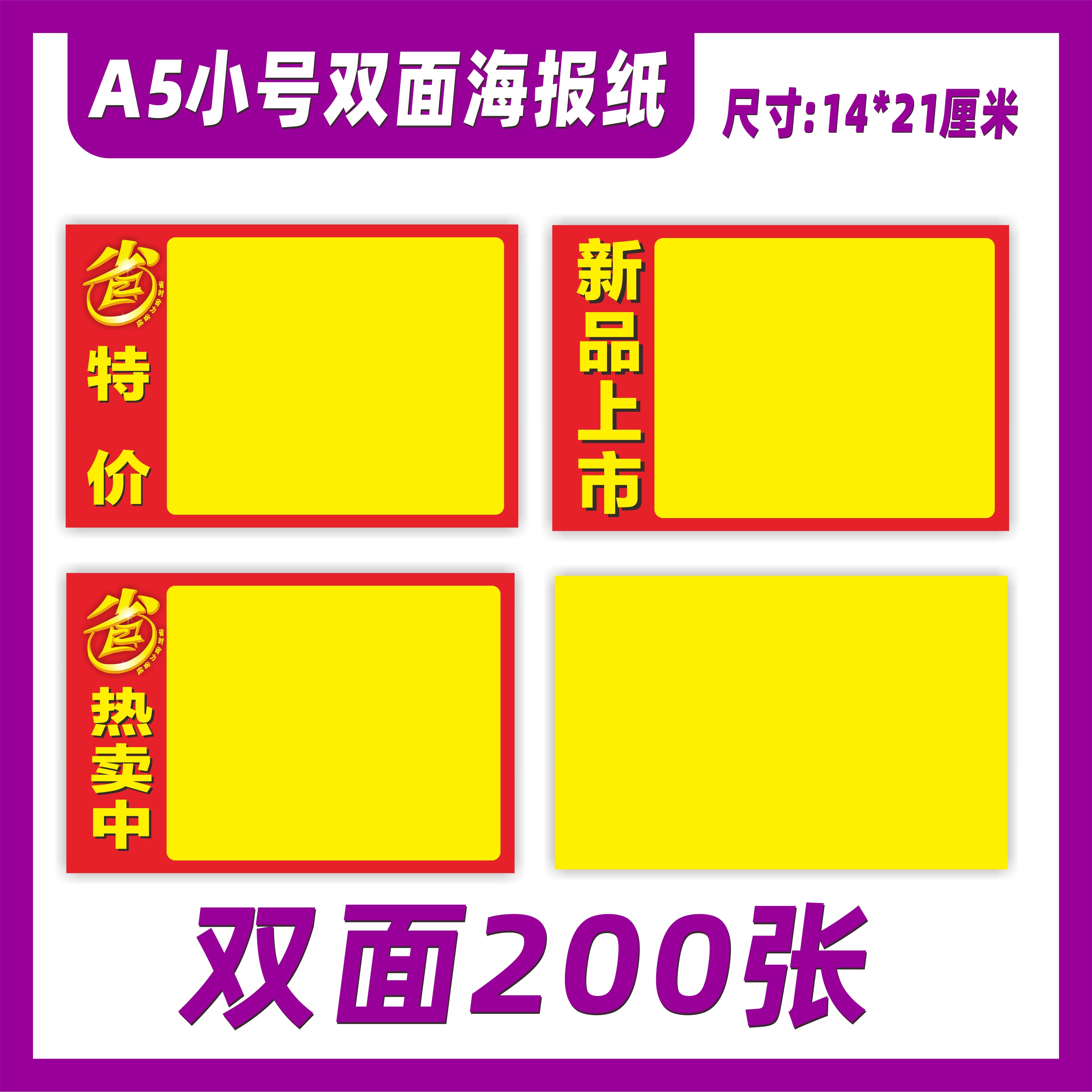 200拯邮A5双面小海报纸POP广告纸炸贴超市标签纸促销宣传价格热门设计联盟服务商