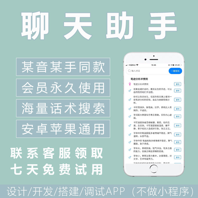 聊天回复助手神器小程序APP软件安卓苹果永久会员版技巧术话语热门设计联盟服务商