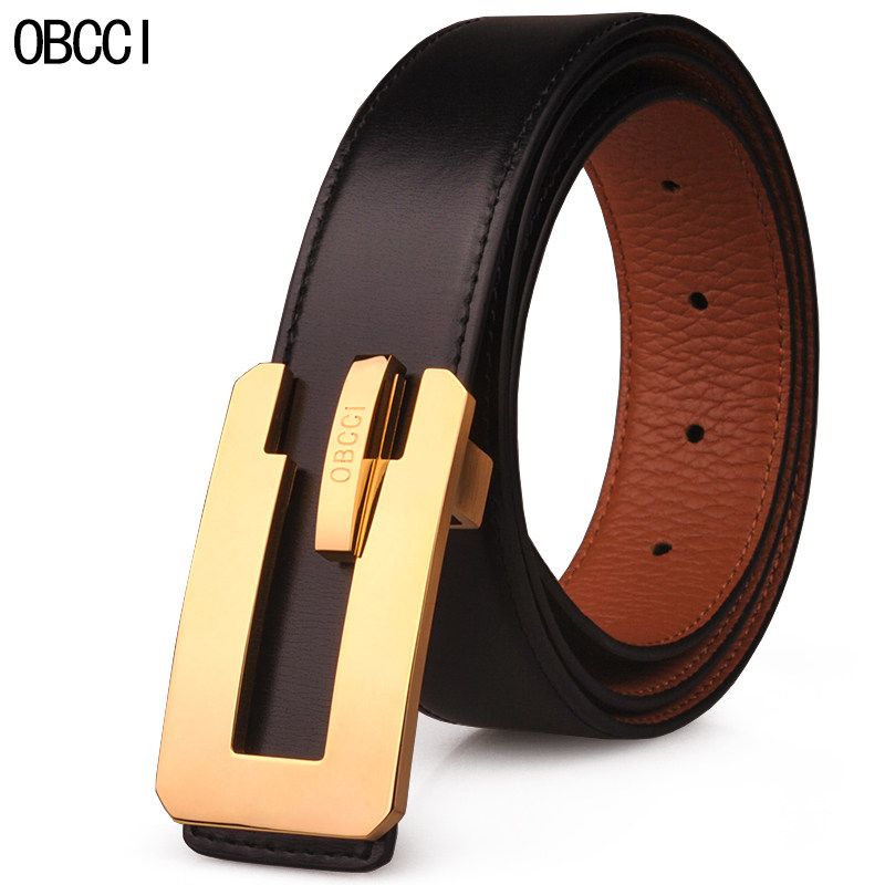 OBCCI男士皮带真皮 平滑扣商务正装头层牛皮腰带男中年男人皮裤带热门设计联盟服务商