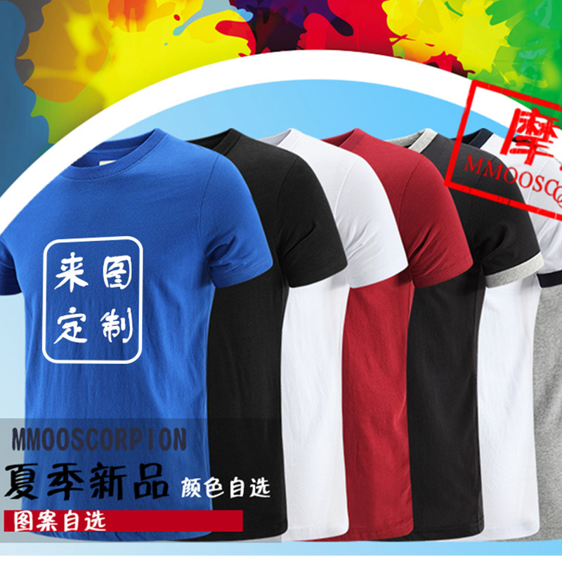 班服DIY男士短袖T恤照片英文数字广告文化衫工作服定制印图加大码.