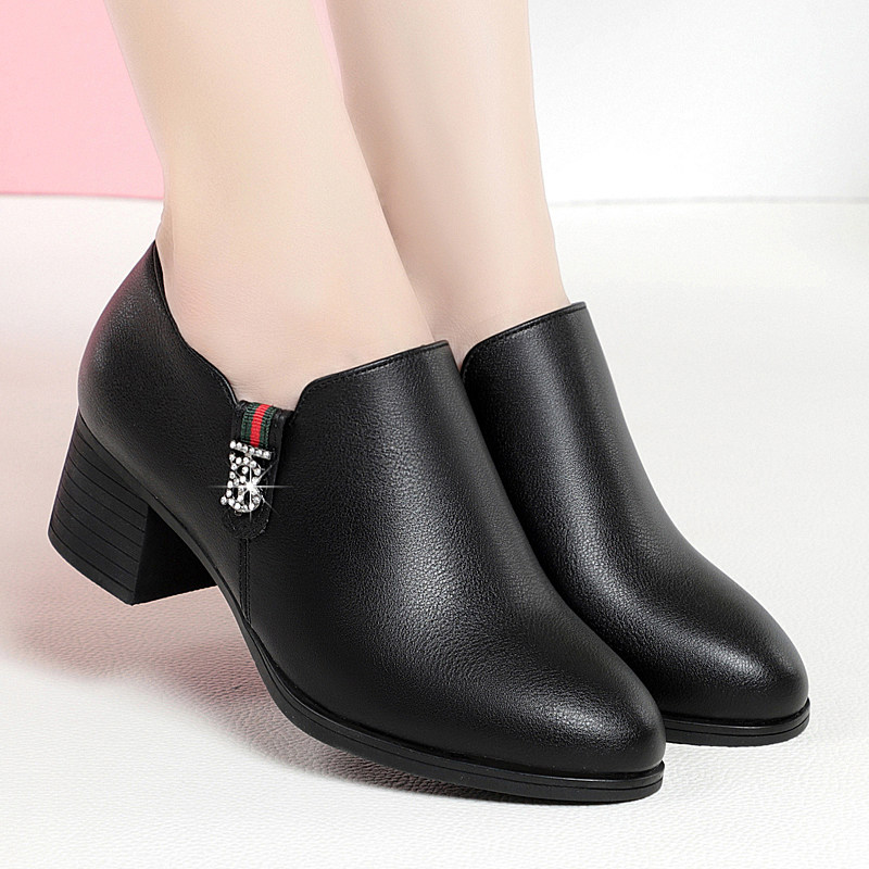 工作鞋女黑色防滑软底秋冬季深口单鞋职业上班鞋正装皮鞋工装鞋子热门设计联盟服务商