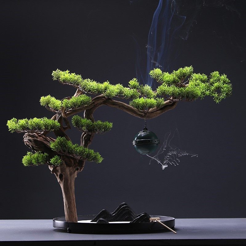 客厅园艺景观大堂摆设禅意迎客松盆景酒店仿真盆栽小摆件室内装饰热门设计联盟服务商