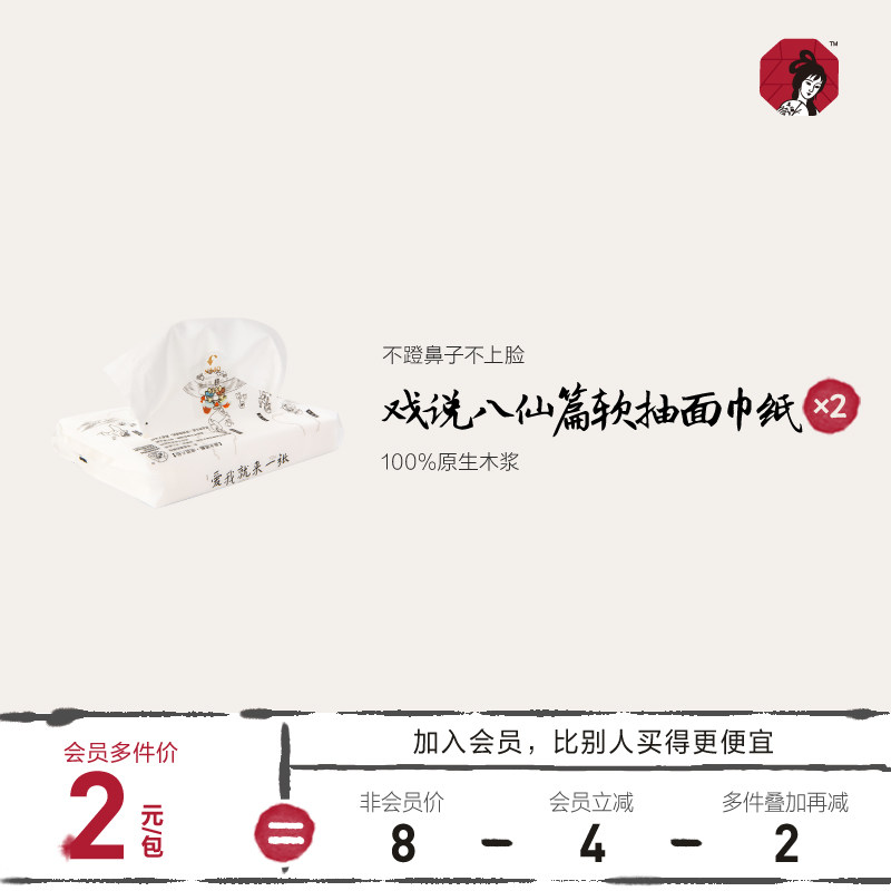 【茶颜悦色官方直营】居家日用原创设计八仙抽纸家用餐巾纸2包装热门设计联盟服务商