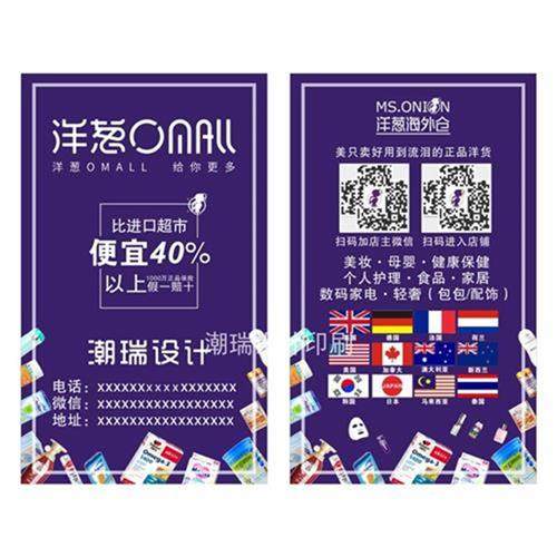 洋葱海外仓名片免费设计s 地推用品小礼品海报宣传单易拉宝定制作热门设计联盟服务商