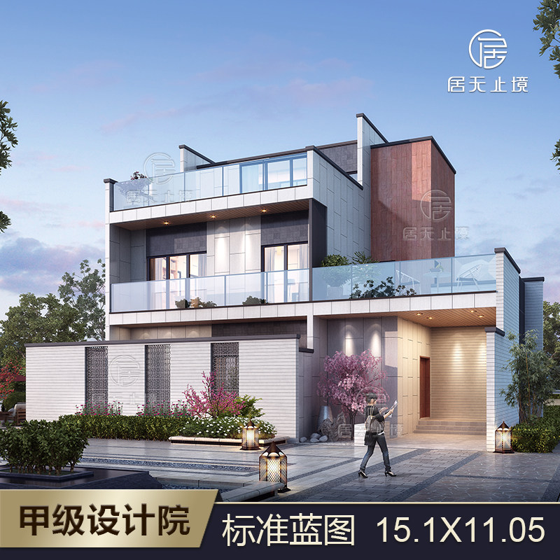 别墅设计图纸三层新农村简约现代风自建房效果图小洋房全套施工图热门设计联盟服务商