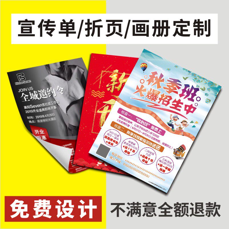 宣传单印制广告彩页双面设计订制作企业宣传画册三折页产品手册印刷辅导暑假班招生美容院美甲单张打印a3a4a5热门设计联盟服务商
