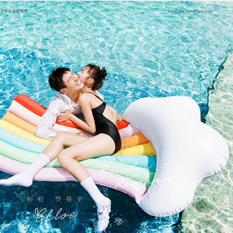 新款婚纱照摄影道具影楼海边沙滩水上拍照道具七彩充气水床浮排热门设计联盟服务商