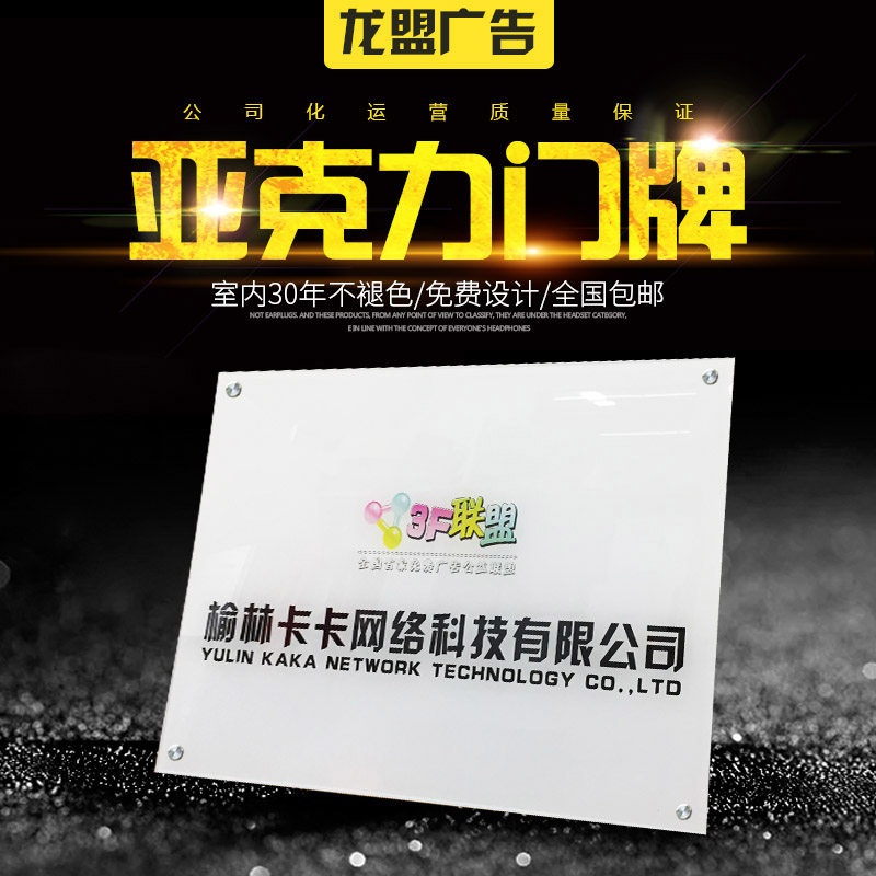 定制亚克力公司形象门牌uv打印企业广告牌招牌门牌标牌定做设计热门设计联盟服务商