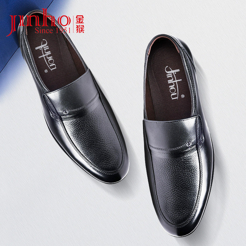 金猴男士正装皮鞋男青年商务套脚圆头真皮男鞋黑色爸爸皮鞋男春秋热门设计联盟服务商