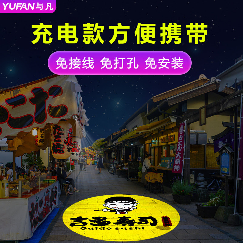 电池充电便携式地摊广告logo投影灯户外室外门头门店店铺地面移动热门设计联盟服务商