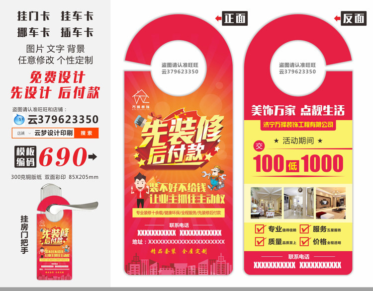 免费设计宣传单广告异形卡装修公司装饰全屋定制墙纸墙布门锁挂钩热门设计联盟服务商