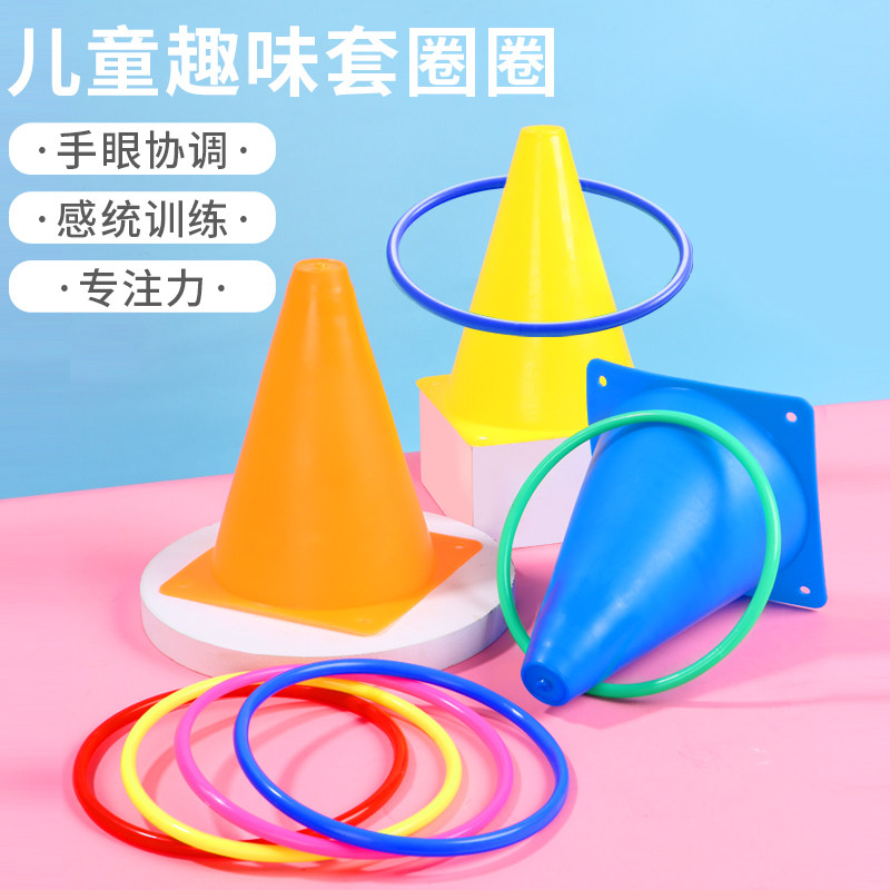 套圈圈雪糕筒室内玩具幼儿园体育感统训练塑料套圈彩色标志桶套装热门设计联盟服务商