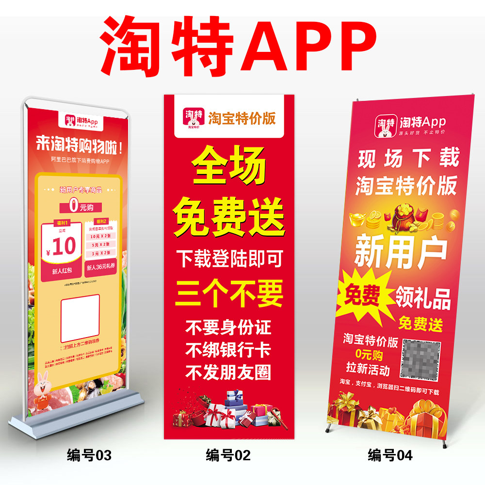 淘特淘宝特价版地推物料拉新广告牌宣传海报展架易拉宝工作证桌布热门设计联盟服务商