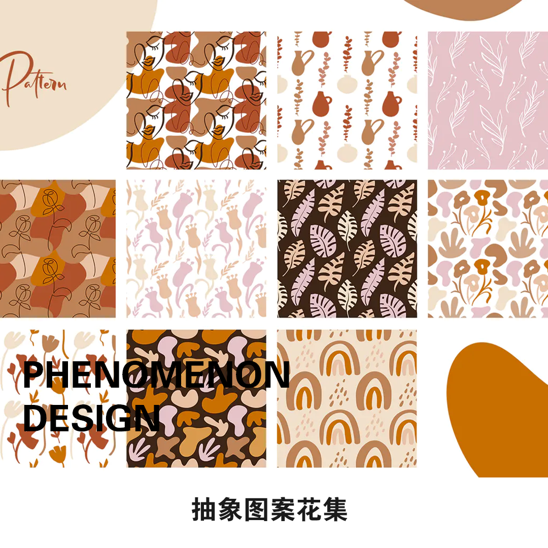 橙色抽象线条色块人物头像花草图案产品服装产品设计海报图案合集热门设计联盟服务商