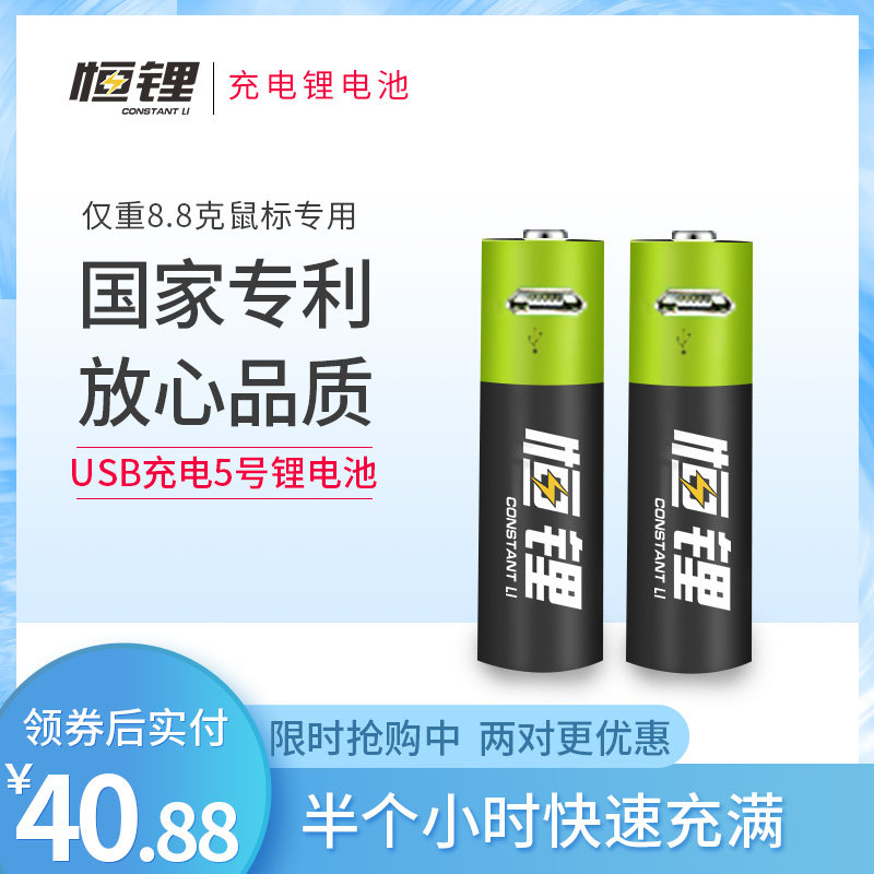 企业店恒锂5号usb快充可充电锂电池8.8g超轻1.5v无线鼠标通用g304热门设计联盟服务商