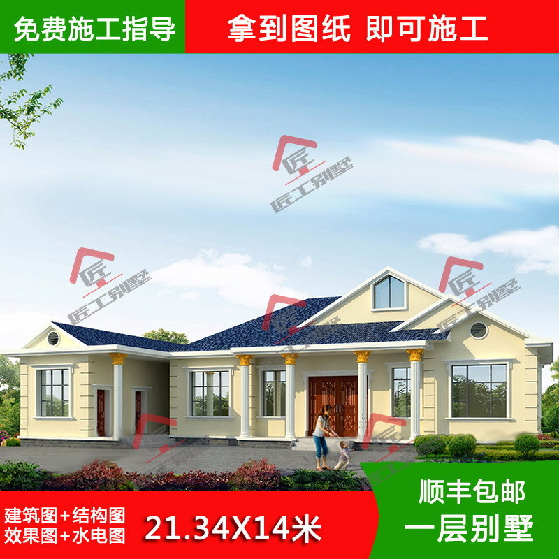 新农村单层自建房小住宅户型图一层别墅设计图纸效果图施工房屋热门设计联盟服务商