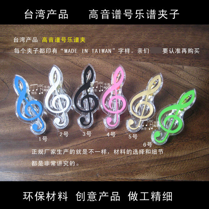台湾产品 高音谱号乐谱夹子 曲谱夹子 书夹 钢琴谱夹子 音符夹