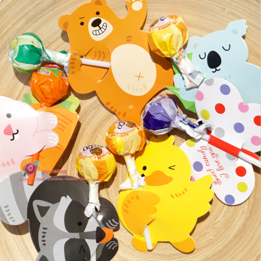 50张韩国可爱卡通小兔动物幼儿园帖装饰卡片棒棒糖卡祝福留言卡热门设计联盟服务商