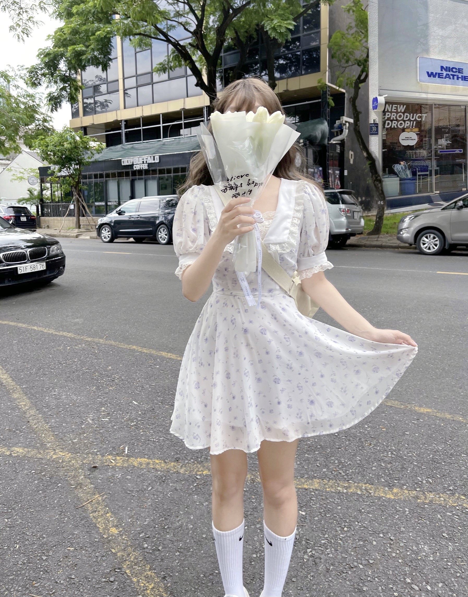 bandarsaya越南代购仙女连衣裙2021款薄款白色法式碎花裙子甜美热门设计联盟服务商