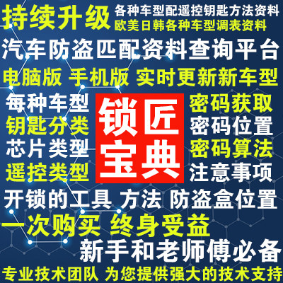 汽车钥匙匹配资料防盗视频教程遥控芯片解码设备仪表腾达密码软件热门设计联盟服务商